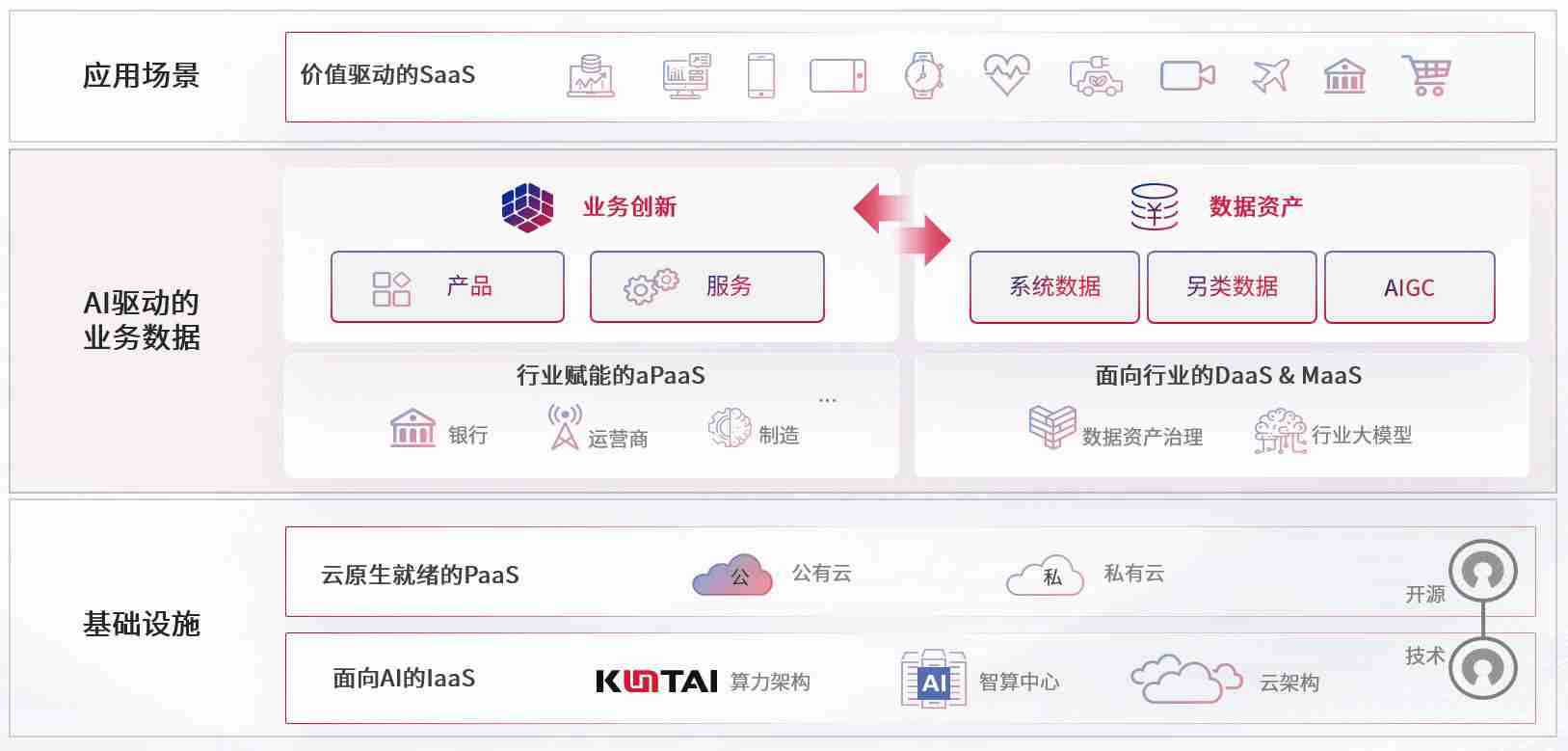 数字时代,,围绕企业数字化转型的关键要素,,亚洲必赢数码开创性的提出数云融合战略和技术体系框架,,,,着力在云原生、、、数字原生、、、、AI原生和信创产业上架构产品和服务能力,,为处在不同数字化转型阶段的快消零售、、汽车、、、、金融、、、、医疗、、政企、、、、教育、、、、运营商等行业客户提供泛在的敏捷IT能力和融合的数据驱动能力,,,构建跨界融合创新的数字业务场景和新业务模式,,,,助力企业级客户建立面向未来的核心能力和竞争优势,,,,全面推动社会的数字化、、、、智能化转型升级。。